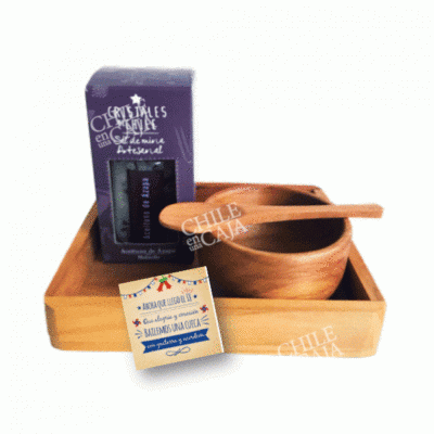 Tazón de vidrio con logo de la empresa e infusor , con cajita de té “Te cuida con infusión de fruta” que pueden ser las siguientes variedades:
